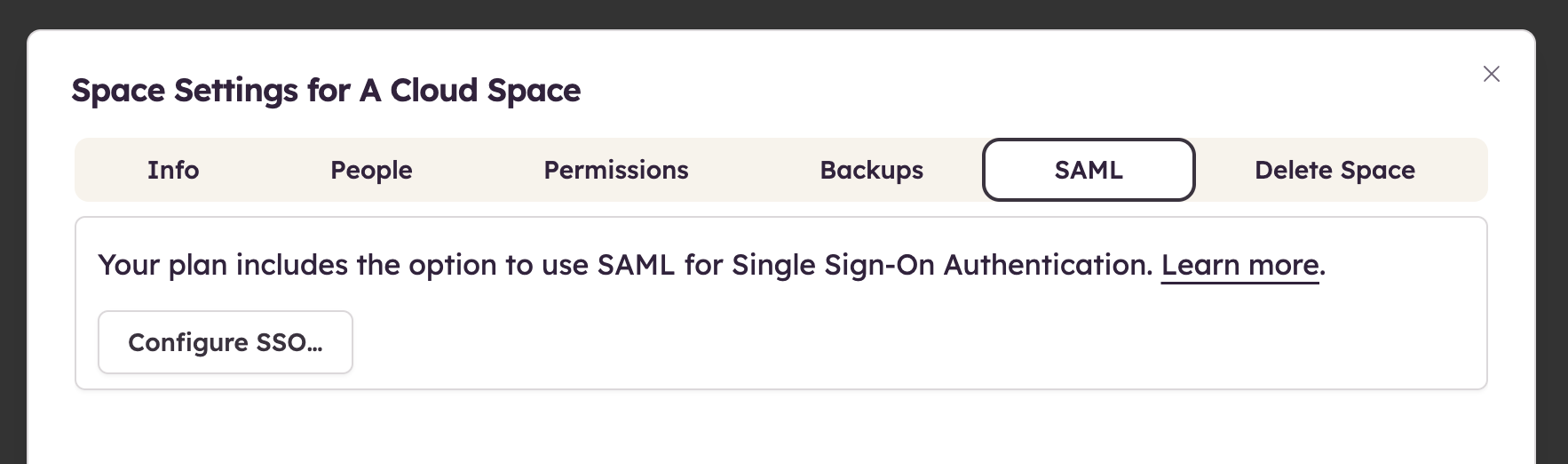Space Owners can configure SSO from the Space Settings, as shown below.
